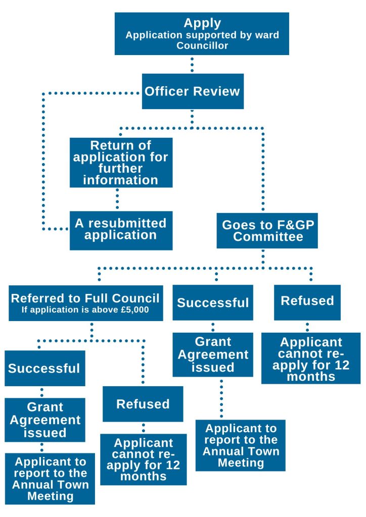 For grants of over £5,000, applications will always be referred to Full Council for a final decision after approval by the Finance & General Purposes Committee.