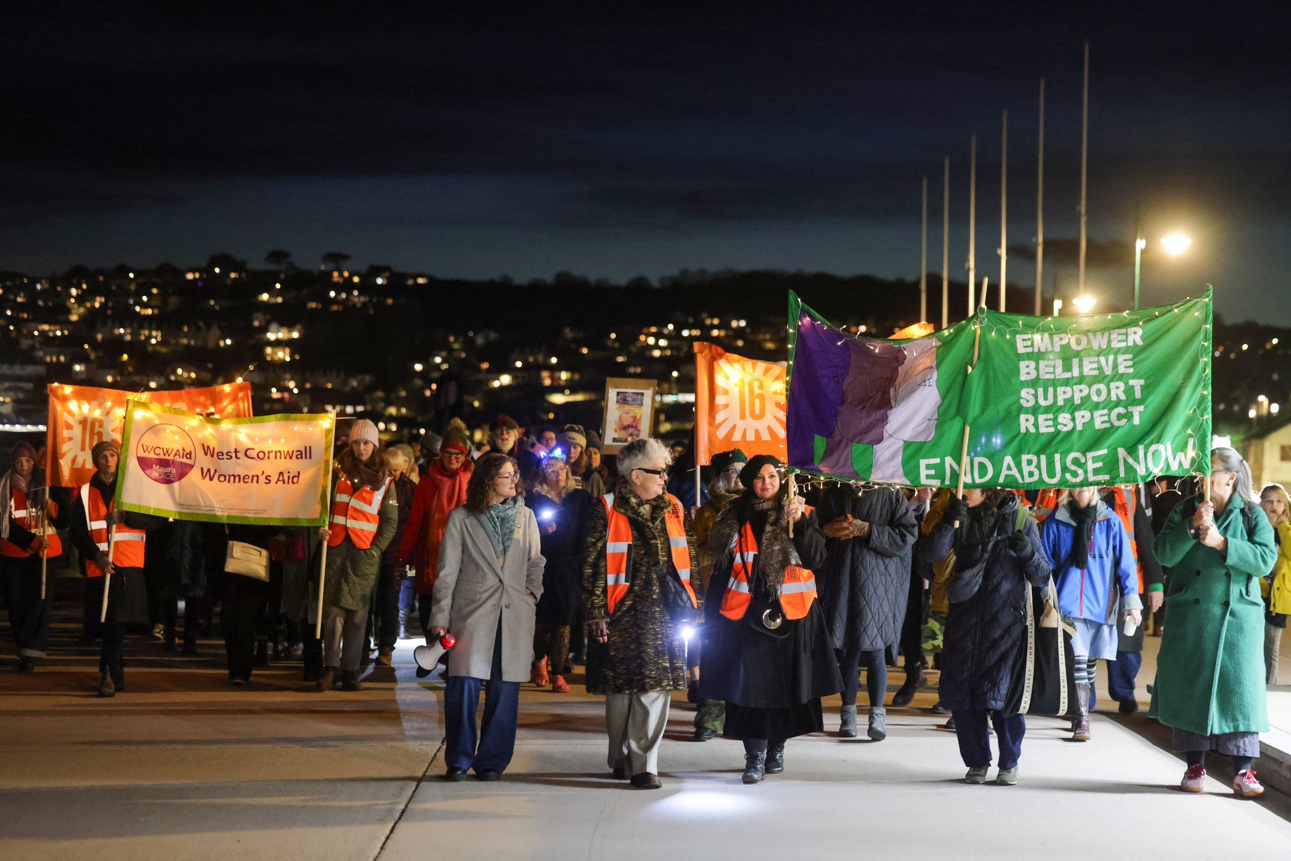 Over a hundred people took part in a night walk in Penzance on Tuesday, 25 November to highlight the issue of violence against women and girls. Now in its fifth year, the town’s annual Solidarity Walk and Vigil organised by West Cornwall Women’s Aid is part of the global campaign ’16 Days of Activism against Gender-Based Violence’, which aims to raise awareness and inspire action.